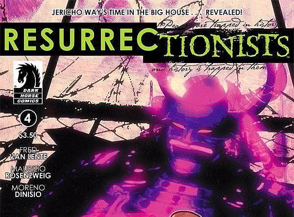Fred Van Lente begins Resurrectionists #4 on a light note introducing some humor via an infomercial. The star is Greg Lennox, and the commercial is reminiscent of Jordan Belfort’s The Wolf of Wall Street except instead of trying to get rich quick, Lennox offers to protect your wealth even after you have died. The humor really preys on the idea of preppers and an impending catastrophic event. There is even a short jab at superhero films!