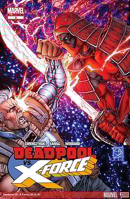 Swierczynski keeps the smile on your face as Deadpool tests out his fancy new toy, forcing Cable to march in lockstep and even salute. Unfortunately the story takes a turn for the unbelievable. Deadpool’s toy has absolutely no power over Cable at all; his marching and saluting are all a ploy in order to smooth-talk the mercenary into spilling the beans on his plan. Deadpool, playing the villain, is happy to oblige in a monologue explaining why he meddled in the Revolutionary War, the Civil War, and now China.
