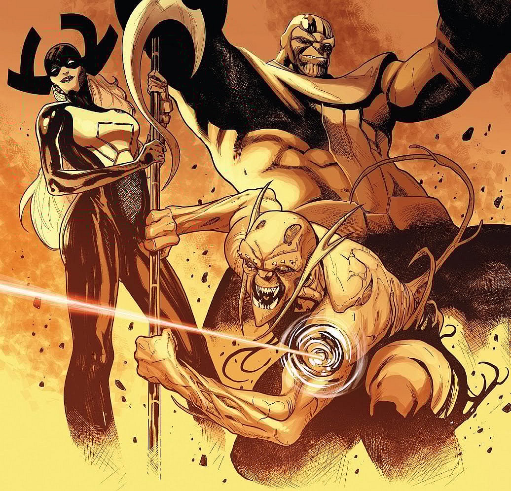 The pages of the Infinity event would also reveal that Corvus Glaive and Proxima Midnight are married. Glaive would refer to Proxima Midnight as his wife and allow her to be the first to enter the Golden City of Wakanda and bring it to its knees as Thanos and his Black Order continue to search for the Infinity Gem.