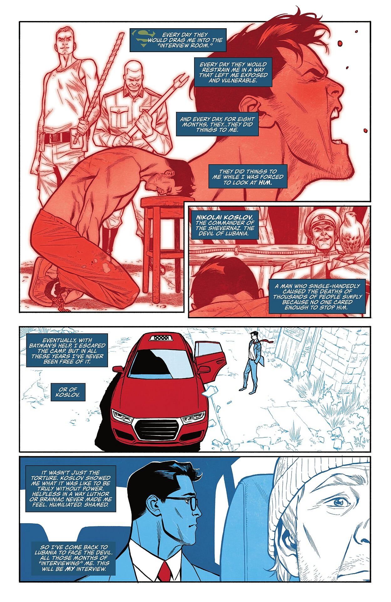 “They did things to me while I was forced to look at him. Nikolai Koslov. The commander of the Shervernaz, the Devil of Lubania,” he adds. “It wasn’t just the torture. Koslov showed me what it was like to be truly without power. Helpless in a way Lluthor or Braniac never made me feel. Humiliated. Shamed.”