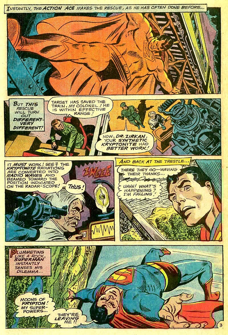 Written by Bob Haney and illustrated by Ross Andru and Mike Esposito, the originally story sees Colonel Koslov capture Superman by first by staging a false flag train derailment to lure him into the country and then, with the Man of Steel distracted, depowering him with a targeted bombardment of synthetic Kryptonite radio waves.