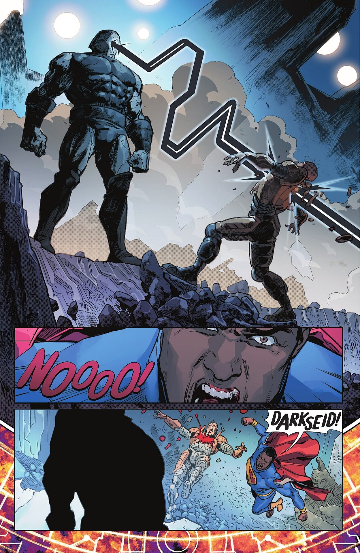 Making his first full appearance since his introduction in the November 30th issue of Justice League Incarnate Vol. 1 #1, American Crusader is sadly seen falling in battle to the Earth-8 version of Thanos, Tartarus.