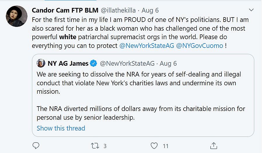Not only is Zhang against the police, but she has described the National Rifle Association (NRA) as a “powerful white patriarchal supremacist organization.”