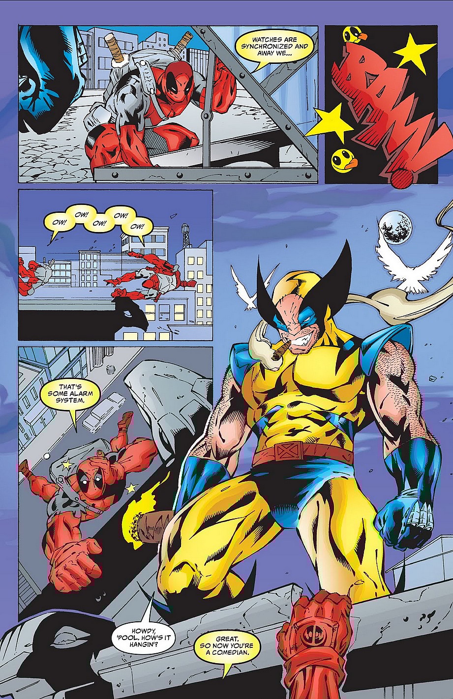 Successfully fending off the madman, Wolverine would come to blows with Deadpool a number of times in the years that followed, the reasons for their occasional brawls ranging from a supervillain’s machinations (Deadpool Vol. 3 #27), to their own egos (Wolverine Annual 1999), to outright backstabbing (Wolverine Vol. 2 #154-155).