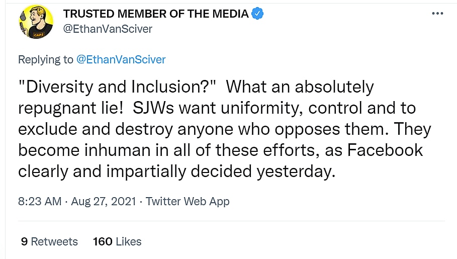 “Diversity and Inclusion?” What an absolutely repugnant lie! SJWs want uniformity, control and to exclude and destroy anyone who opposes them. They become inhuman in all of these efforts, as Facebook clearly and impartially decided yesterday,” the former Green Lantern artist proclaimed.