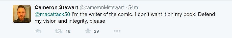 He would later demand, “I’m the writer of the comic. I don’t want it on my book. Defend my vision and integrity, please.”