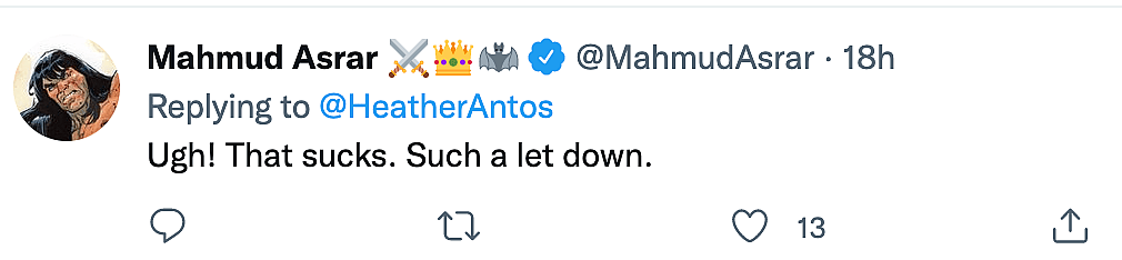 Mahmud Asrar, having recently worked on Uncanny X-Men followed with, “Ugh! That Sucks. Such a let down.”