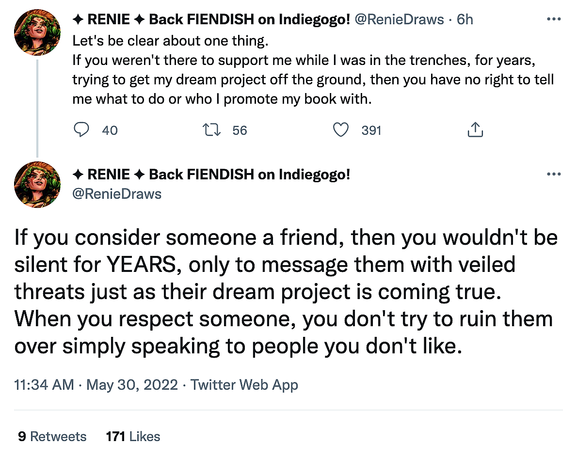 In 2022, it appears the climate in mainstream comics has become so filled with extreme toxicity, to use Heather’s words, to where pros will gang up and attack their fellow creators for daring to sell their books independently.
