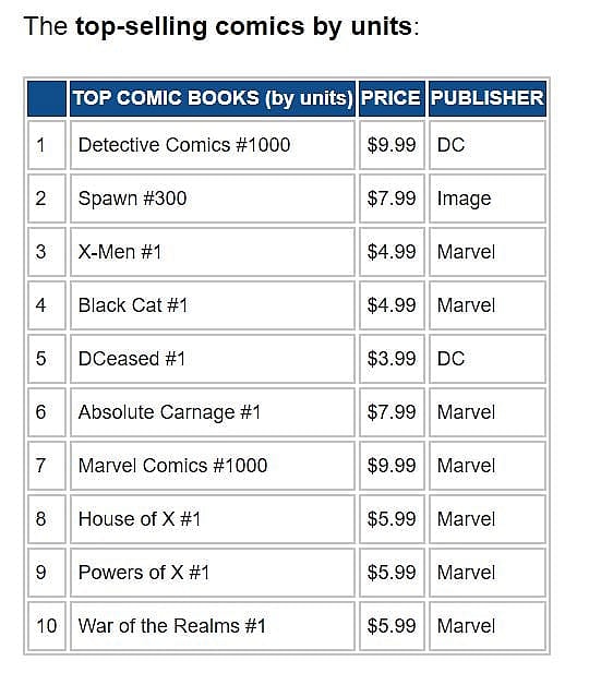 And if you dig a little deeper, the top selling comics by units sold are all comics with high price points. Only 1 of the top 10 comics, DCeased #1 is priced at the normal $3.99.