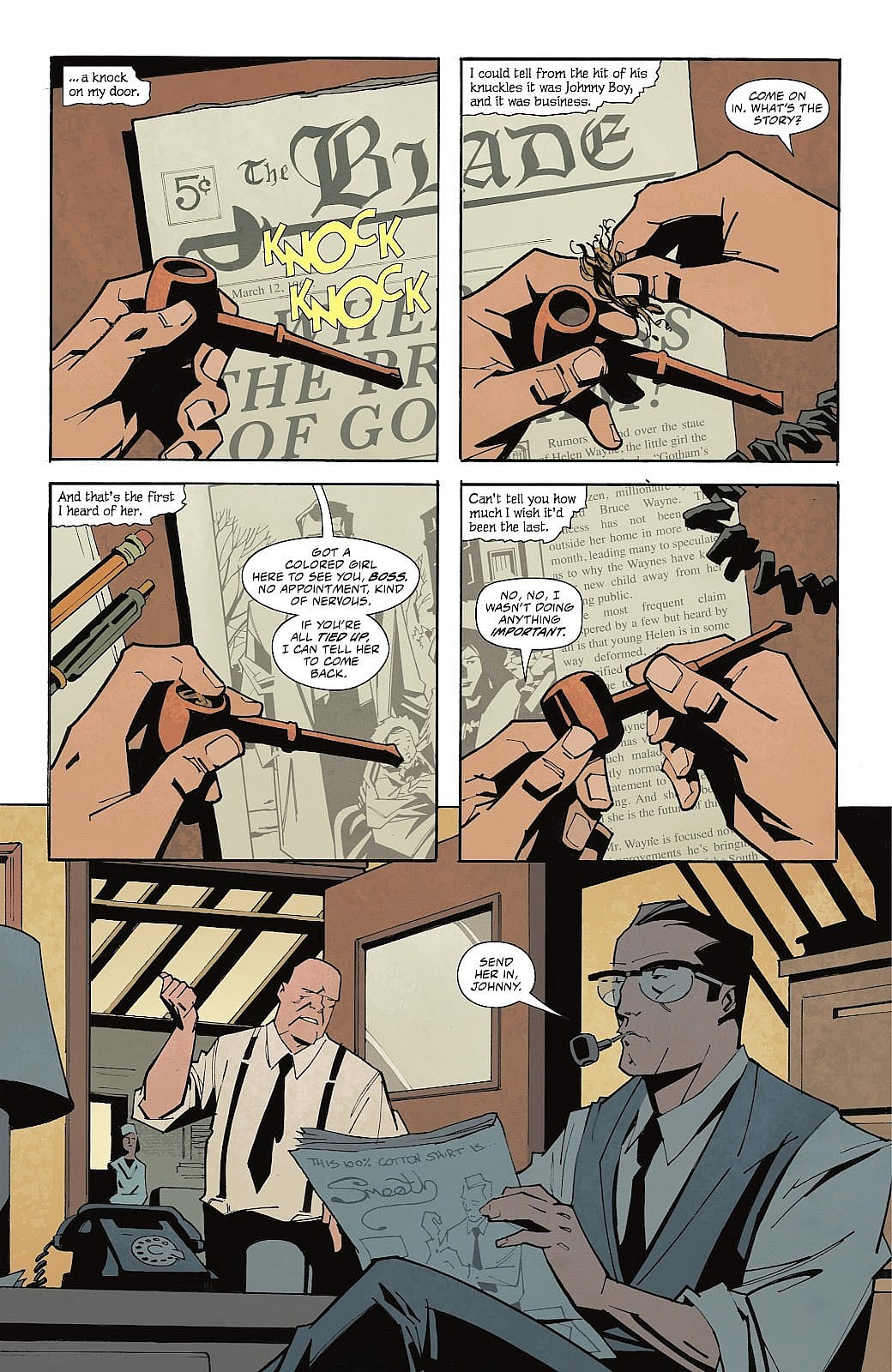 The reason the above expressions appear in this latest tale from Year One is not random. Gotham City chronicles the new adventures and cases of the original star of Detective Comics, Slam Bradley, a hard-boiled 30s/40s PI in the tradition of Sam Spade, Mike Hammer, and Philip Marlowe.