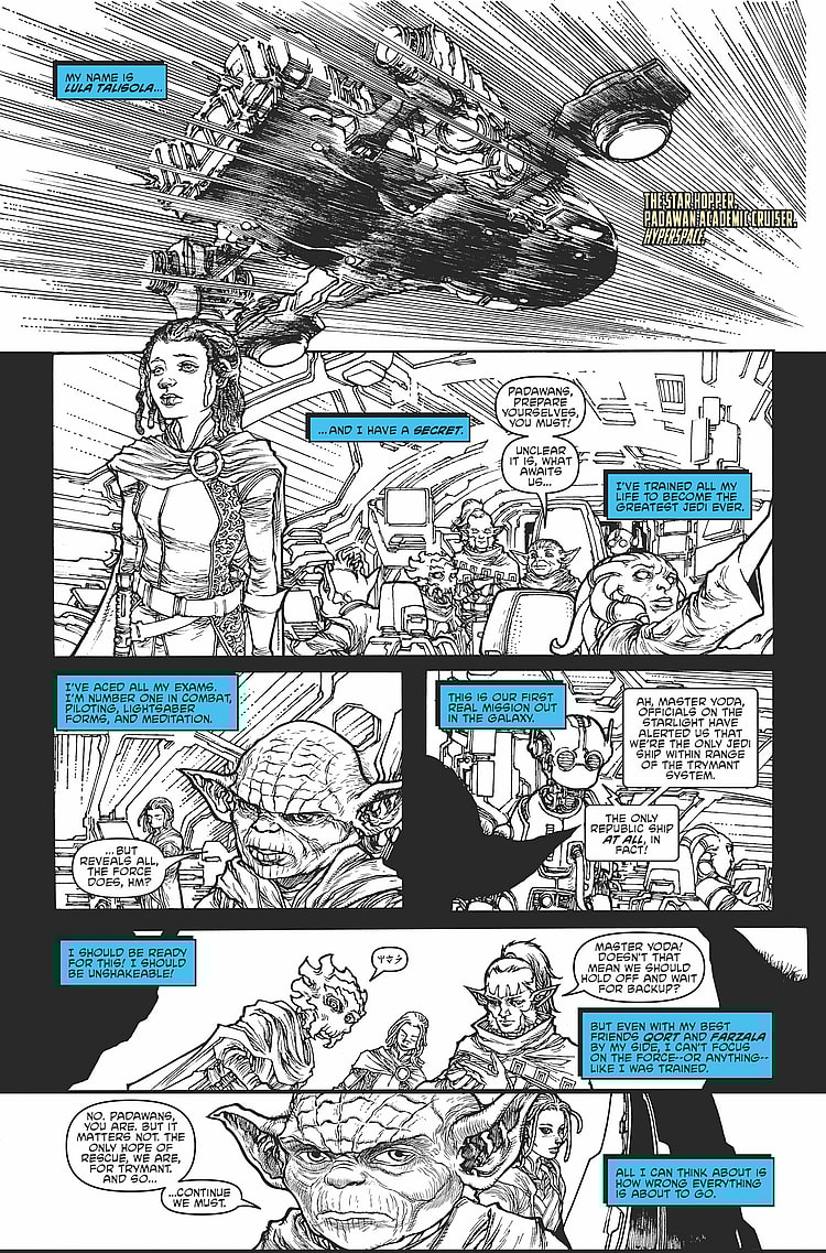 Siglain also pointed to how the book features “a diverse group of young Padawans” as a selling point, teasing that the young Jedi students will find themselves in over their heads, lightsaber action, mysterious new villains, more lightsaber action, and Master Yoda, and that’s just the first two issues.”