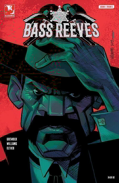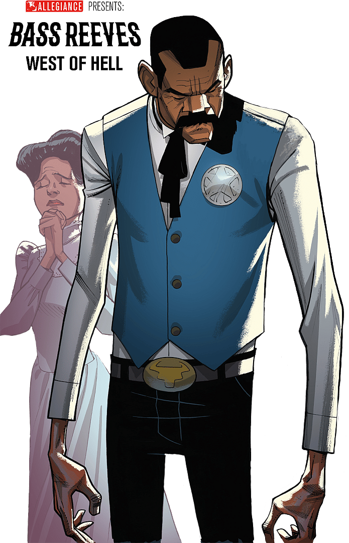 The graphic novel collects six issues of the Bass Reeves comic book, “including 3 that have not been released in physical copies.” All told, the Allegiance Arts & Entertainment crowdfunded book is set to have 136 pages.