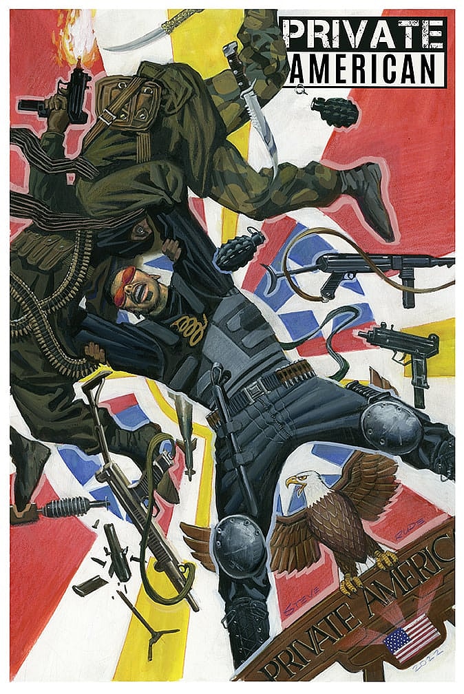 Joining Baron on Private American are illustrator Richard Bonk, colorists Gabe Eltaeb and Ichsan Ansori, and letterer Warren Montgomery. Bonk and longtime Baron collaborator Steve Rude will provide two different covers.