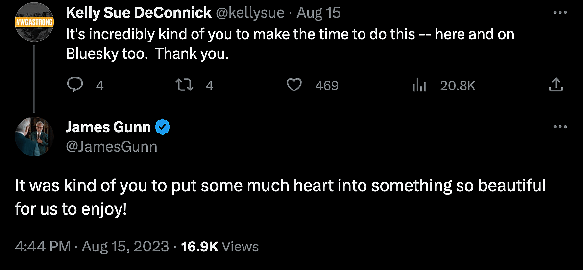 It starts with Gunn himself and his giving of flowers so to speak, and flattery, to Kelly Sue DeConnick on X (the artist formerly known as Twitter). The filmmaker and DC Studio exec showcased a cover and some pages from DeConnick’s Wonder Woman graphic novel Historia: The Amazons, which retells their history, and morphs it into something readers don’t recognize.