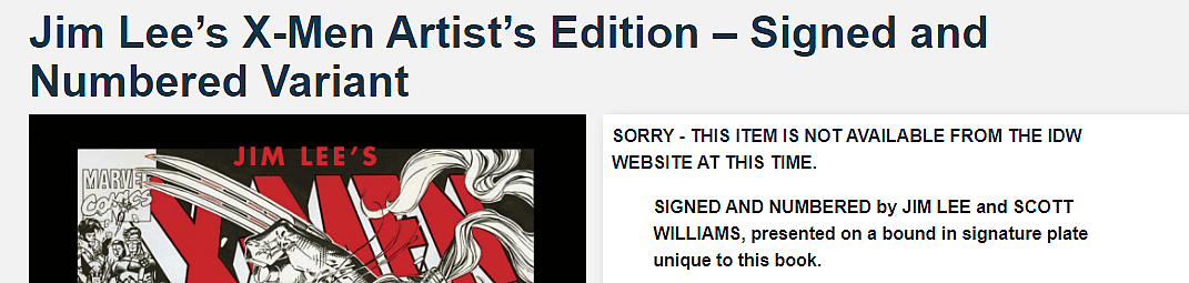 Not only is there the regular Jim Lee’s X-Men Artist’s Edition, IDW will also be exclusively selling Jim Lee’s X-Men Artist’s Edition – Signed & Numbered Variant through their web store.