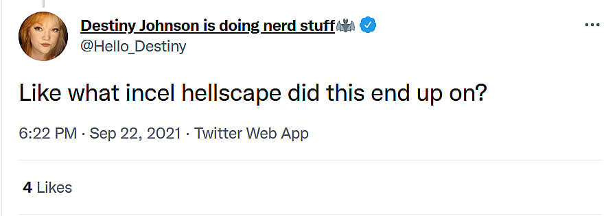 Next, Johnson questioned, “Like what incel hellscape did this end up on?”