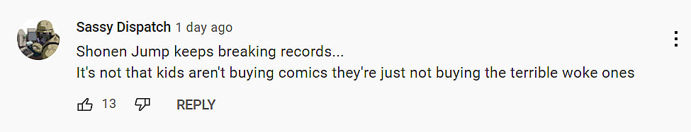 Another one states, “Shonen Jump keeps breaking records… It’s not that kids aren’t buying comics they’re just not buying the terrible woke ones.”