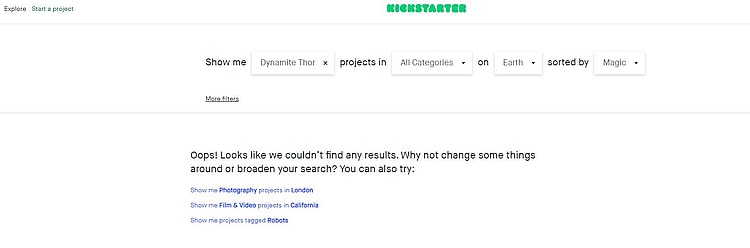 Unfortunately, the KickStarter campaign appears to be shadow banned by KickStarter. When you attempt to search KickStarter for the project using the key words “Dynamite Thor,” there are no results.