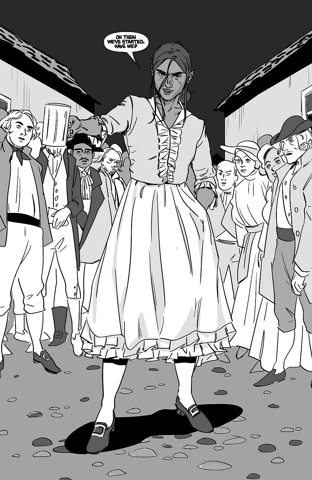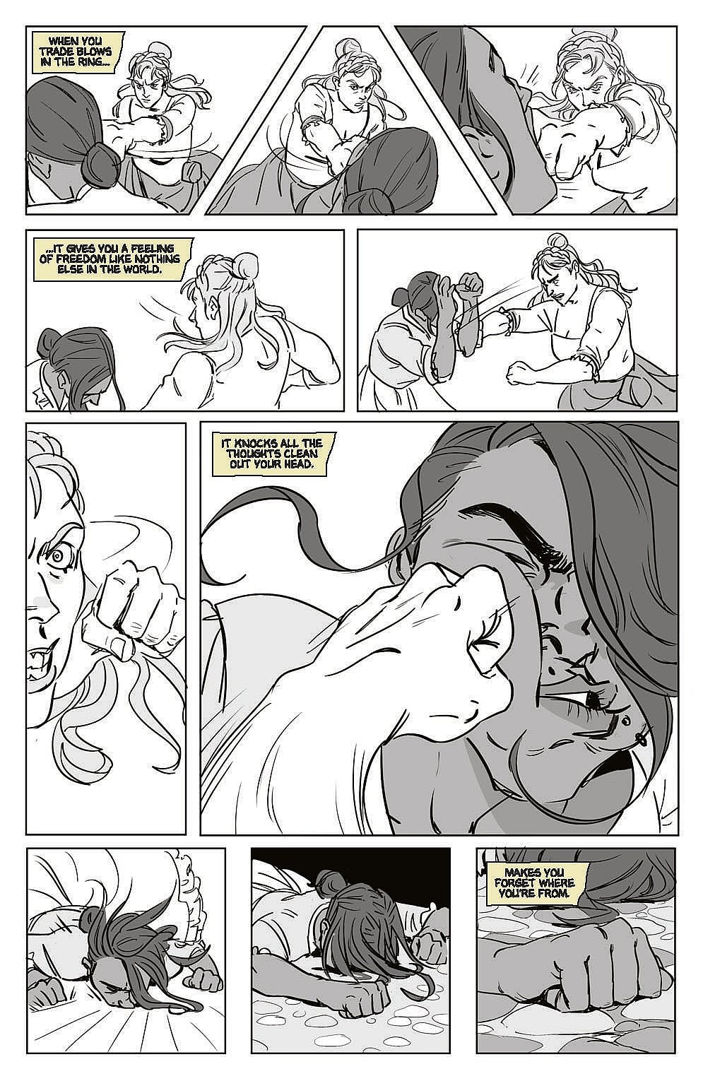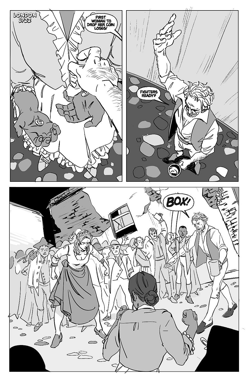 A press release from Legendary Comics reads, “Championess is based on the true story of Elizabeth Wilkinson, a female bare-knuckle boxer in 18th century London. Elizabeth, reimagined as half-Indian, and her sister Tess struggle to make ends meet and cover Tess’s debts.”
