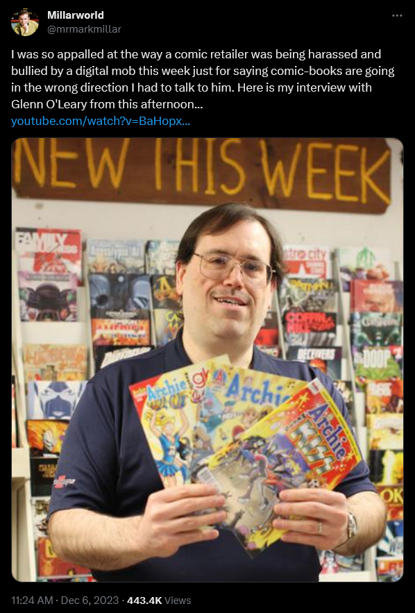 Unsurprisingly, given that Millar had interacted with an individual they perceived as one of comics ‘greatest evils, this friendly interaction was soon seized upon by ‘cancel pigs’ in order to try and bully the Superman: Red Son creator.