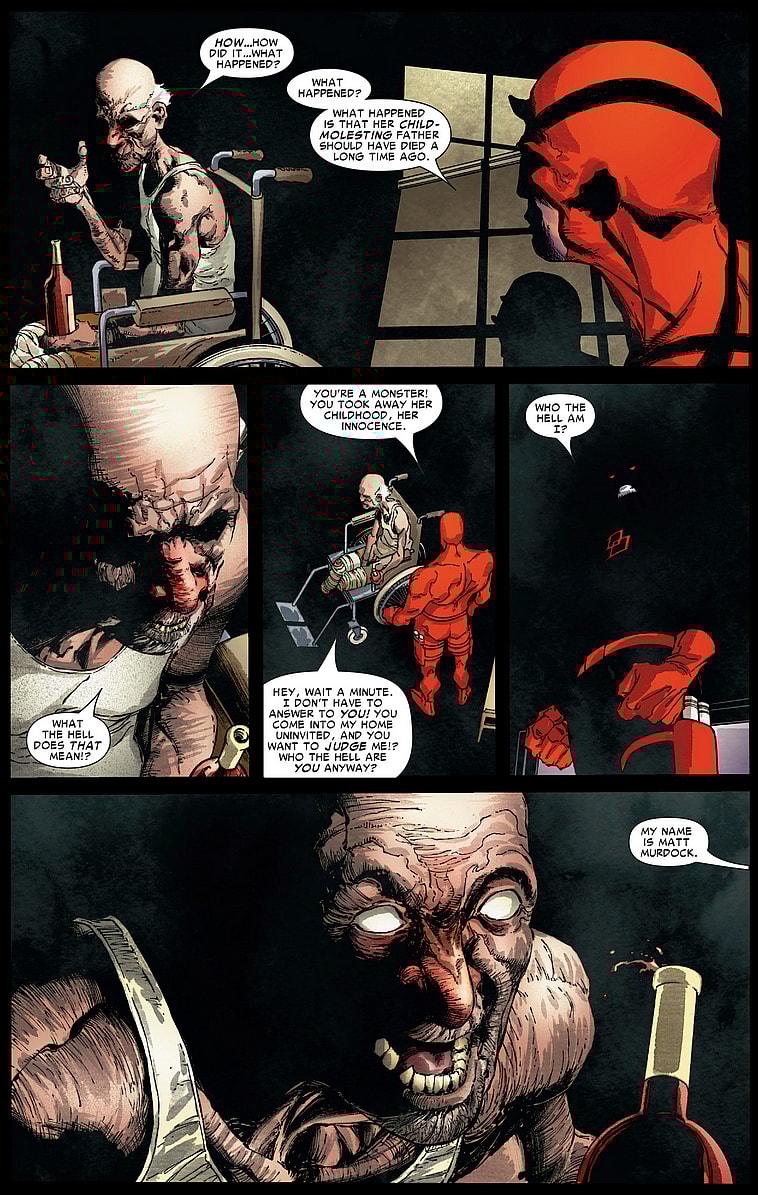 Revealing in his self-written Daredevil: Father title that the old-man saved by Daredevil in his origin story was a serial and incestual child molester: