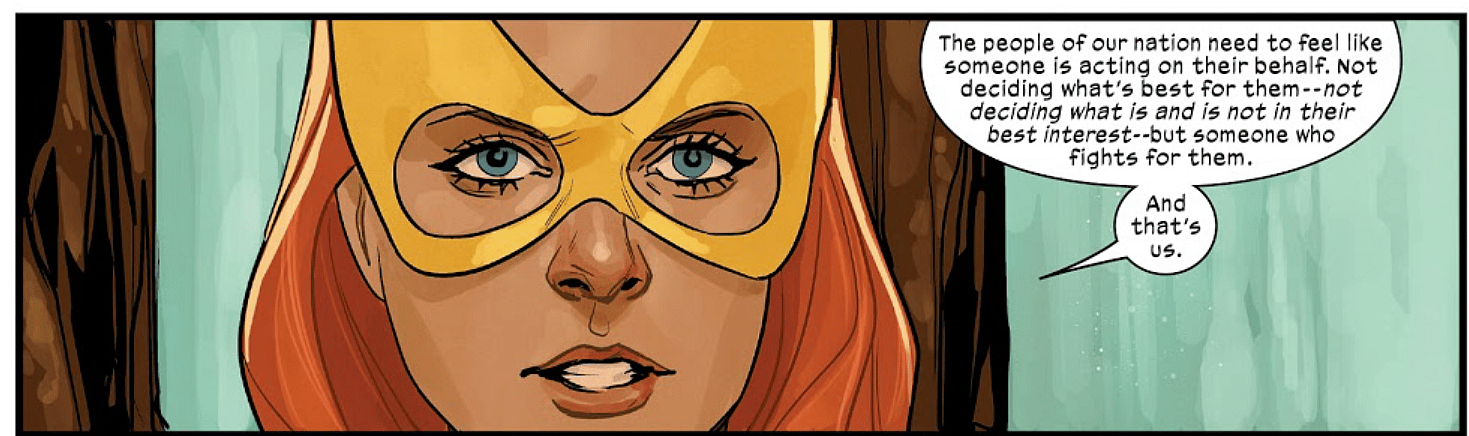 Jean explained their priority was to the X-Men and that “the people of our nation need to feel like someone is acting on their behalf. Not deciding what’s best for them — not deciding what is and is not in their best interest — but someone who fights for them. And that’s us.”