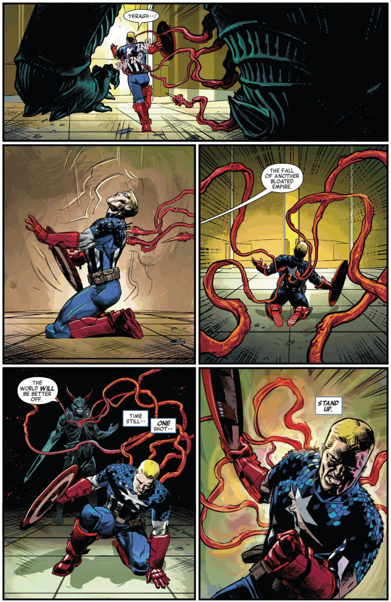 For those who may appreciate a quick refresher, the path to said ‘Hydra Cap’ reveal began in 2014’s Captain America Vol. 7 #21 when a battle between Steve and the villain known as the Iron Nail ended not only with the villain’s defeat, but also the complete neutralization of the Super-Soldier Serum coursing through the Star-Spangled Avenger’s body courtesy of his opponent’s supernatural powers.