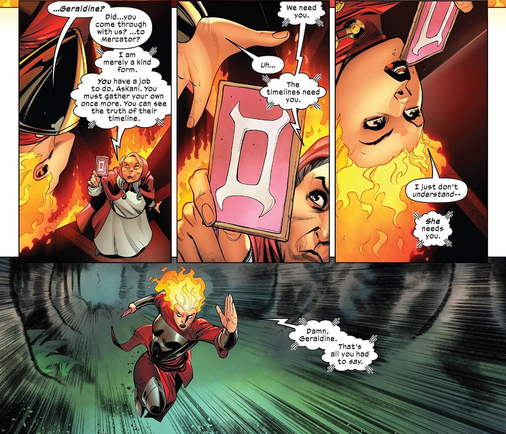 Everyone that is, except Rachel, who after being informed by a vision of the team’s Otherworld ally Geraldine that “She needs you” races off to break her teammates free from the realm’s hold over their minds.