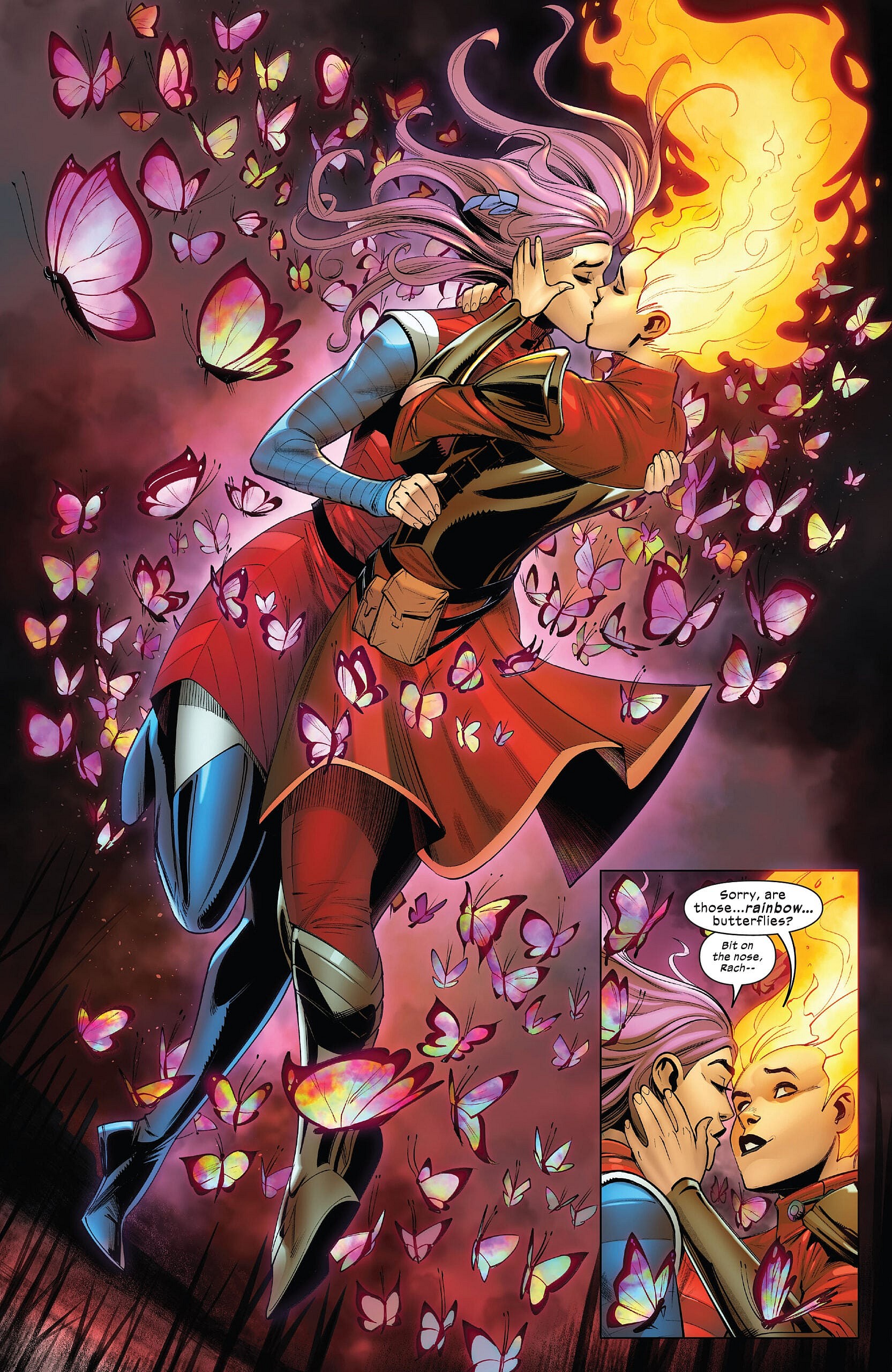 It should be noted that prior to Knights of X #4, Rachel has never shown an explicit romantic or sexual interest in women.