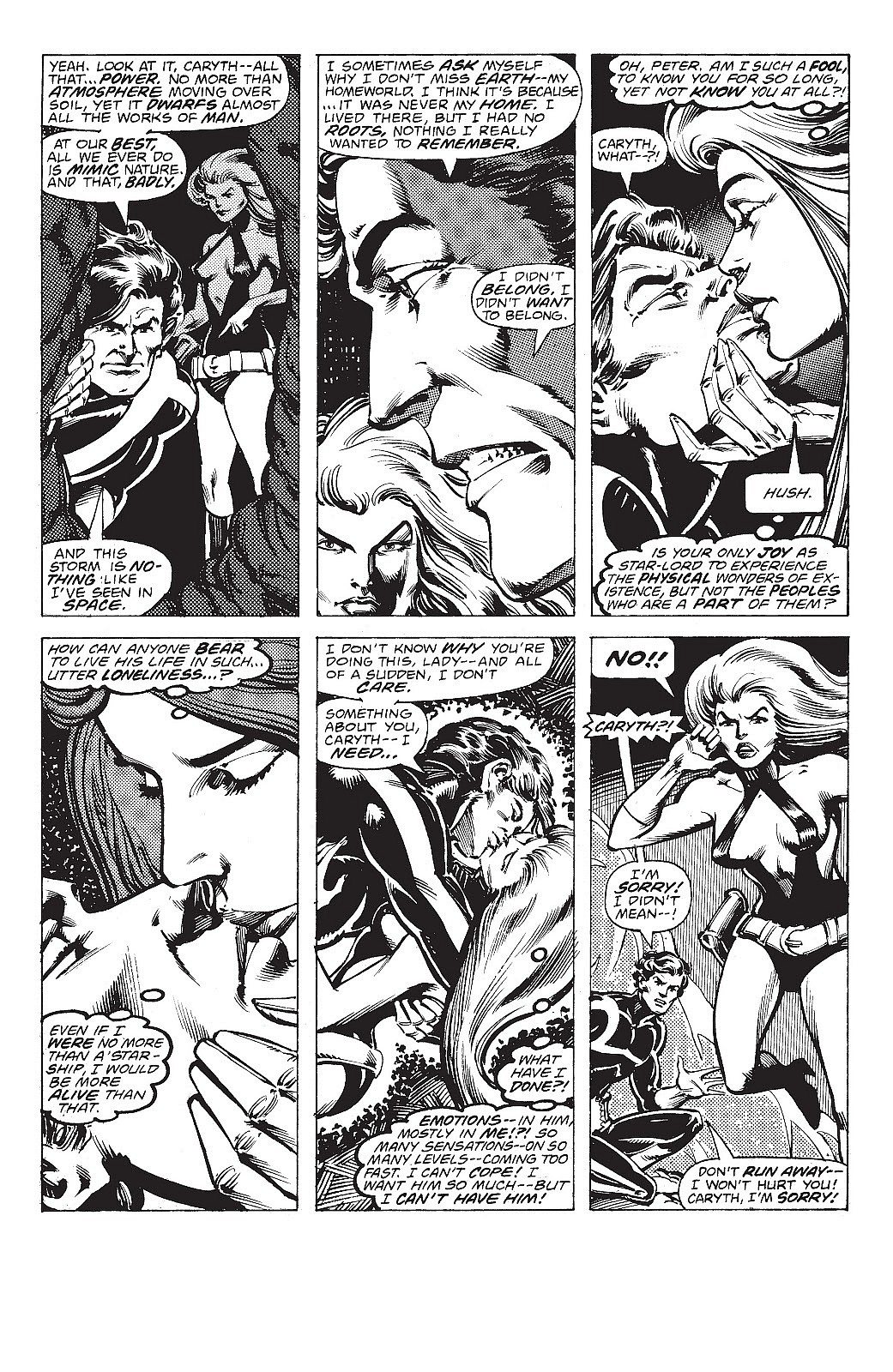 In Marvel Comics Super Special #10, Star-Lord declares his love for the alien Aletha.