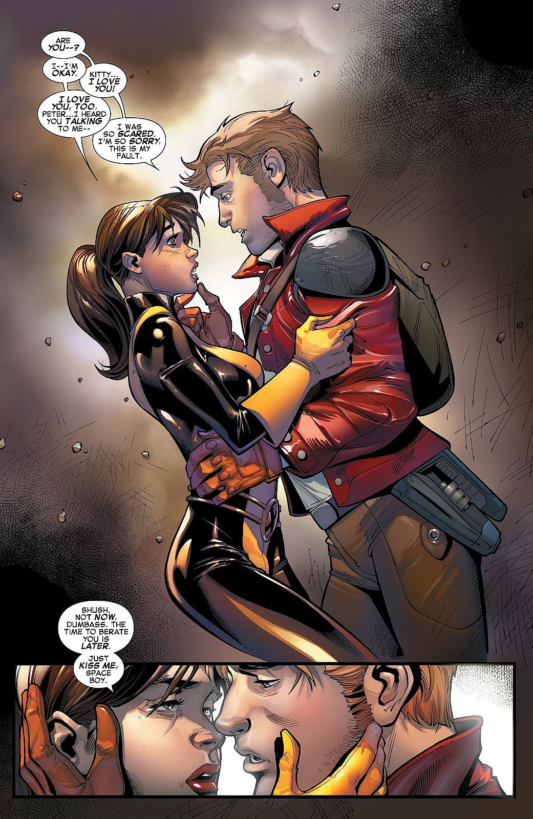The two would eventually get engaged, but Kitty breaks it off when she decides to stay on Earth and the Guardians of the Galaxy including Peter Quill return to space.