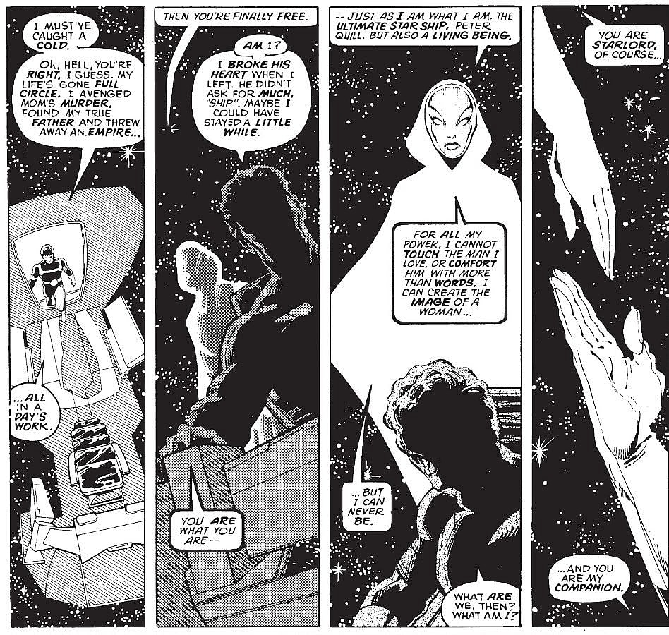 By Marvel Preview #14, Star-Lord’s ship would actually take the form of a woman and the two would become romantically involved while they explored the planet of Ferrol.