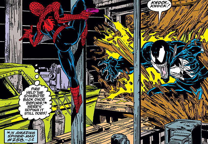 This part sticks out due to the fact that Spider-Slayers were originally portrayed as villains, commissioned by J. Jonah Jameson and built by inventor Spencer Smythe to, well, slay Spider-Man.