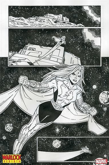 This never-before-seen chapter will introduce a character named Eve Warlock who is described as “someone stronger faster, and smarter than Adam himself!” On top of being superior to Adam Warlock in what appears to be every way, she will also “strip Adam of all his power, starting with the Soul Gem.”