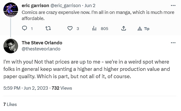 He responded to a user who wrote, “Comics are crazy expensive now. I’m all in on manga, which is much more affordable.”