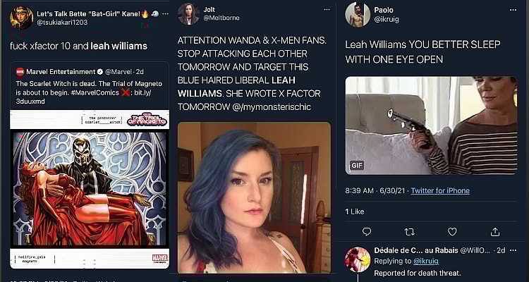 The backlash against Williams wasn’t limited to just a couple of tweets from some random accounts, as a litany of tweets expressed various degrees of contempt with Williams’ writing, swore off any further titles she may write (such as the core issues of the upcoming Trial of Magneto story line), and even making veiled death threats towards her over social media.