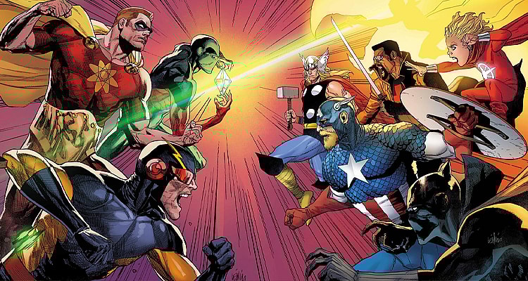 Spinning out of writer Jason Aaron and artist Ed McGuinness’ current run on The Avengers, Heroes Reborn (the event’s name a reference to the 1990s Marvel reboot attempt of the same name) will see the creative team explore a world wherein Marvel’s star superheroes are nothing but shattered versions of their former selves, replaced as Earth’s Mightiest Heroes by the publisher’s Justice League parody, The Squadron Supreme.