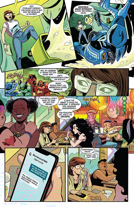 However, in the story’s epilogue, Cowan is seen communicating with the very same @genderama///1989 in a friendly manner, indicative of a previous relationship, in a moment that completely undermines the transgender Marvel character’s previous snarky retort.
