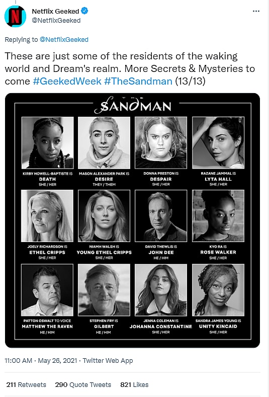 “If you think the Endless have any specific human race or form, you’ve missed something in Sandman,” responded Gaiman. “Don’t worry. Watch the show.”