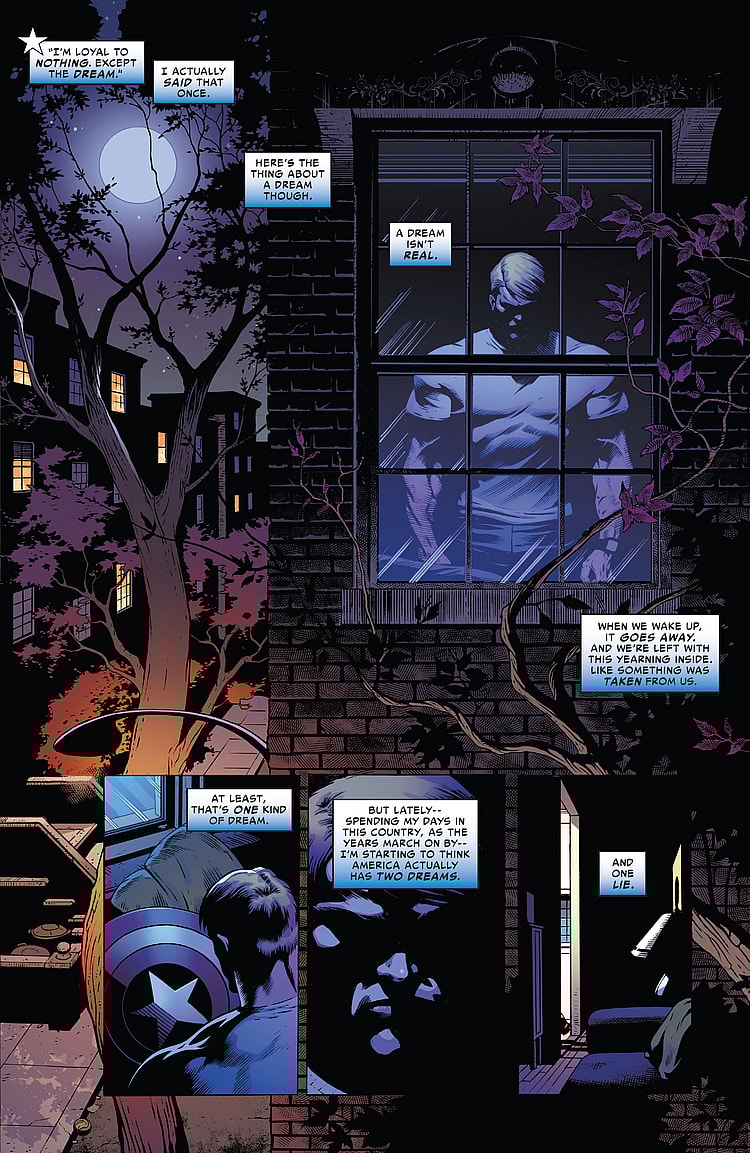 Cain expressed similar sentiments about Captain America’s belief in the American Dream being put in doubt this past month in the first issue of the United States of Captain America.