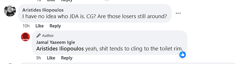 Aristides Iliopoulos commented, “I have no idea who JDA is. CG? Are those losers still around?”