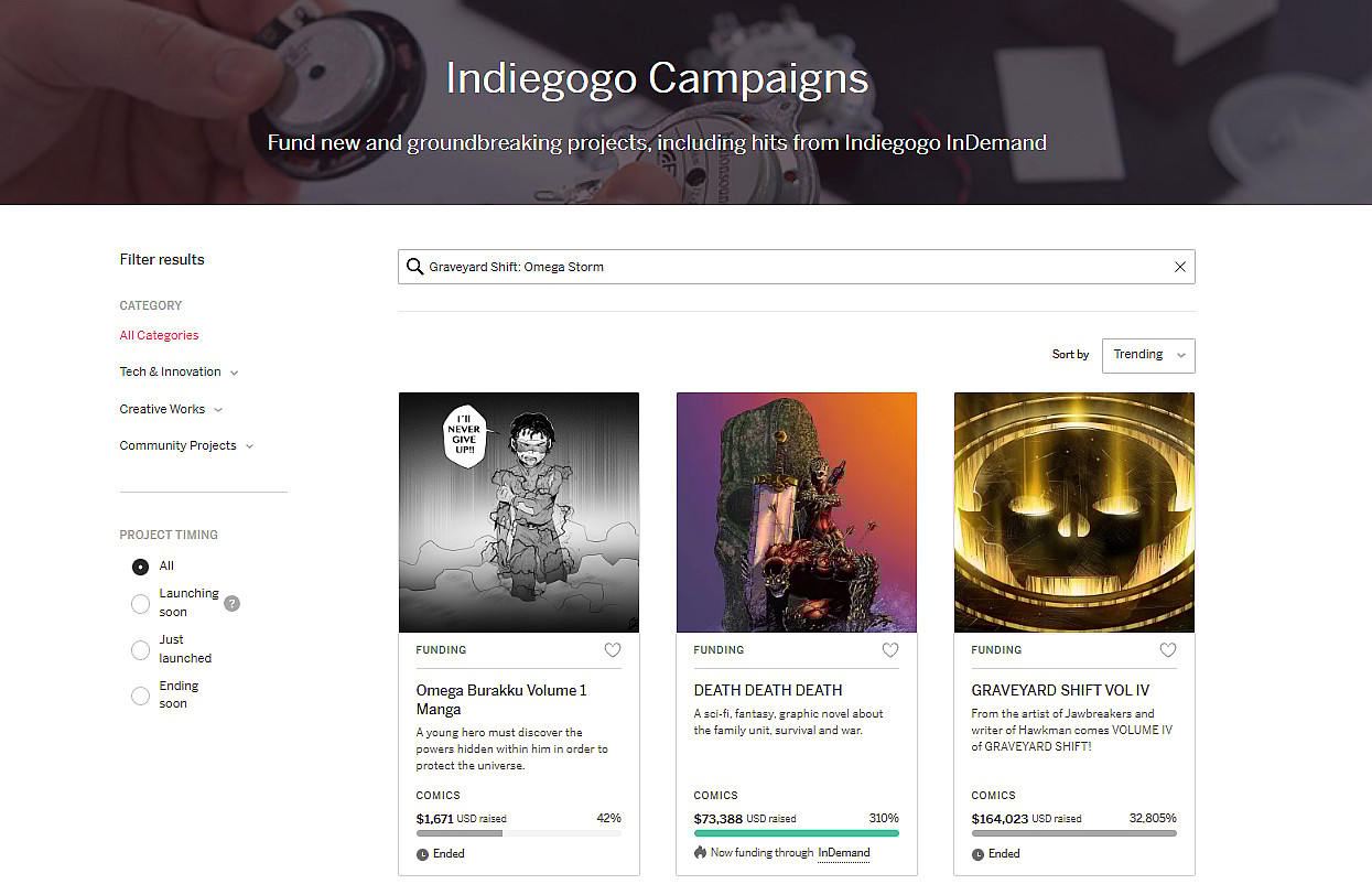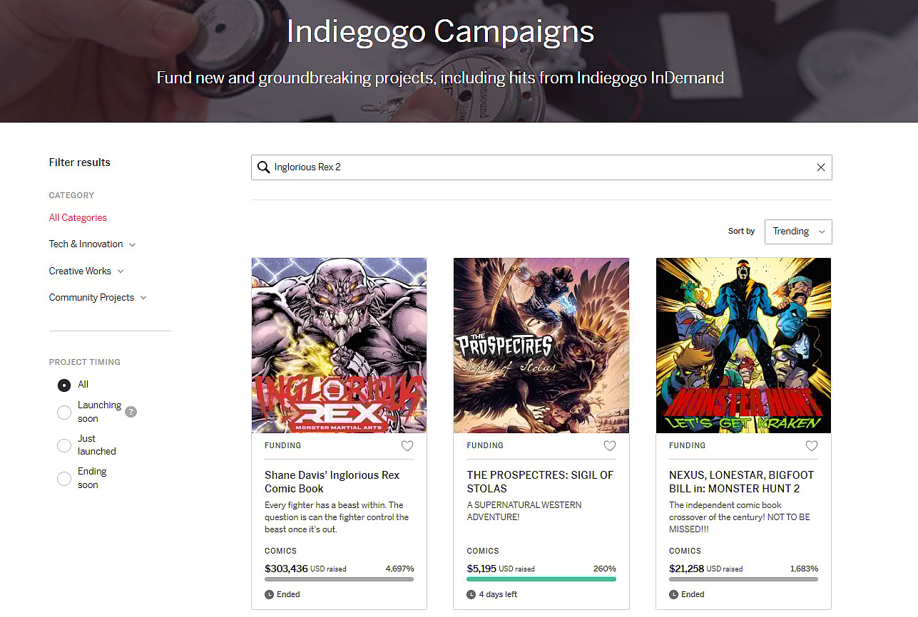 Numerous ComicsGate IndieGoGo Campaigns Appear To Be Getting Shadowbanned By The Crowdfunding Platform