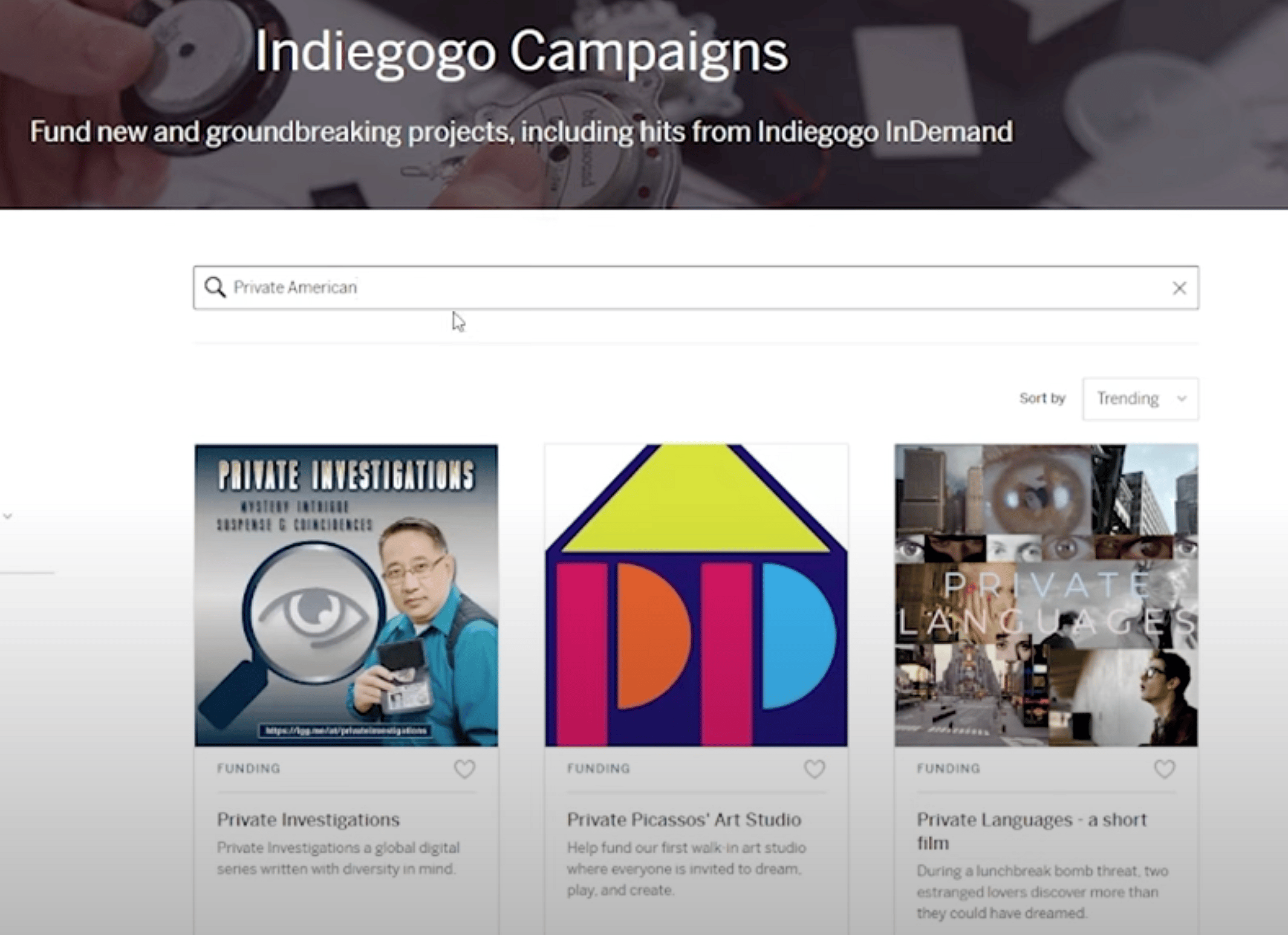 Upon further examination, when one goes to the “comics” section of IndieGoGo to manually search for the project, Private American doesn’t appear on the list.