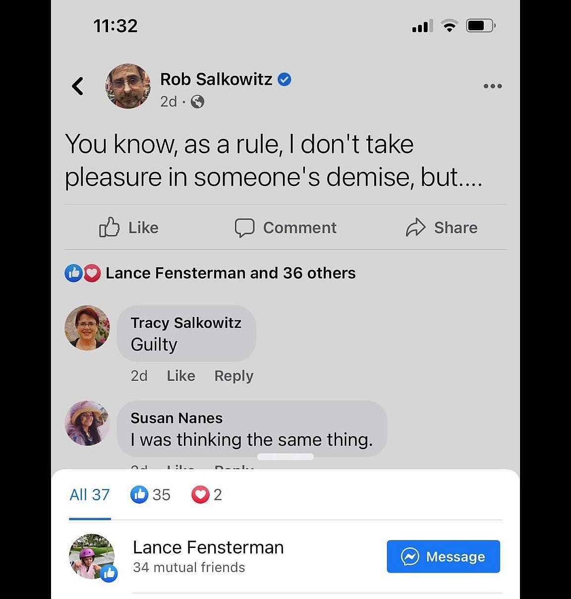Salkowitz and seemingly Fensterman are not the only ones to celebrate Limbaugh’s death.