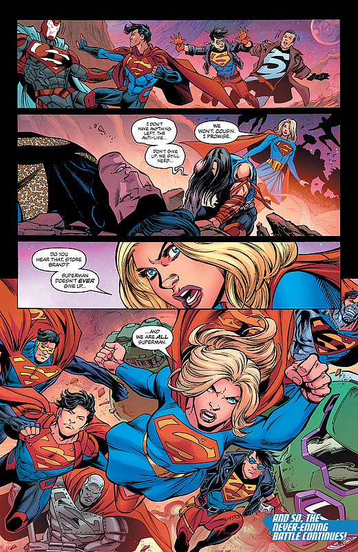 However, he keeps the emphasis firmly on Connor Kent, and specifically, the newly reestablished relationship between Connor and Superman as brought briefly back into canon by Brian Michael Bendis during his run on Action Comics.