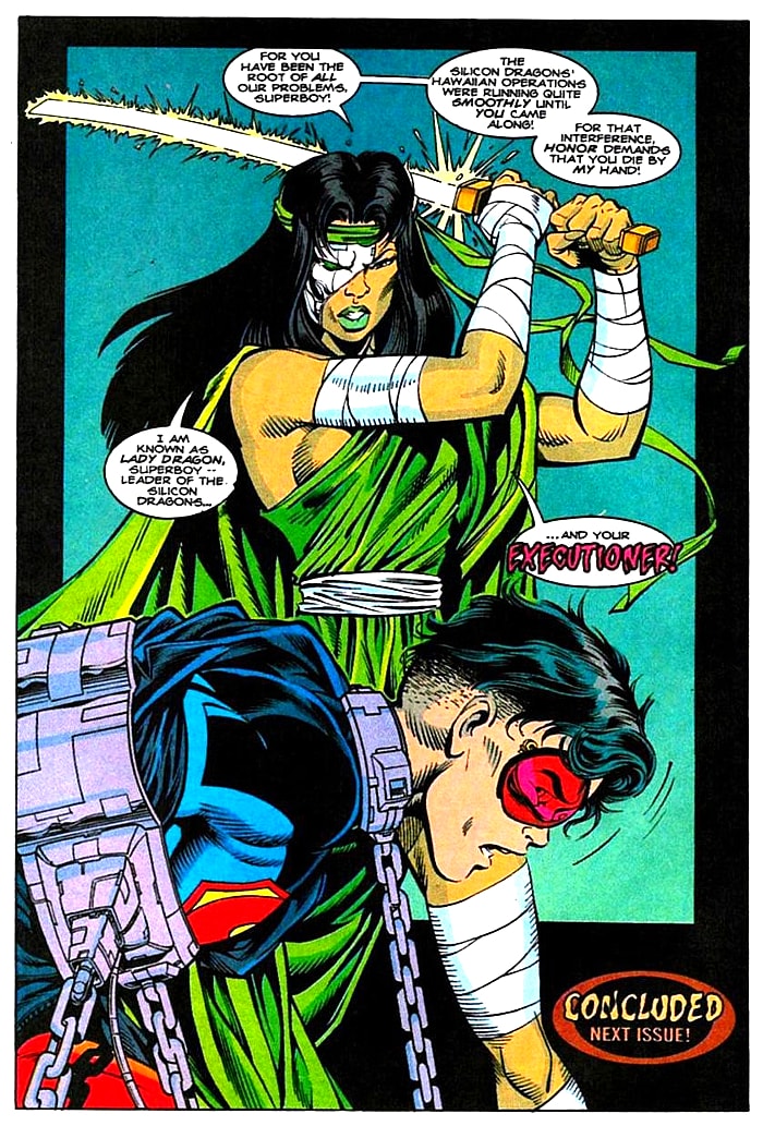 Superboy has a meager history of going on missions with Task Force X dating back to a time post-Crisis on Infinite Earth, dead-center in the aftermath of Reign of the Supermen. In issue #13 of his 90s solo series, Connor joins an ensemble of the Squad, whose members include Deadshot, Captain Boomerang, and King Shark, on a mission to neutralize the threat of Lady Dragon and the Silicon Dragons.