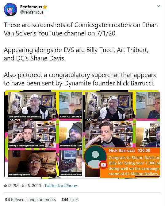 Renfamous wrote, “These are screenshots of Comicsgate creators on Ethan Van Sciver’s YouTube channel on 7/1/20.”
