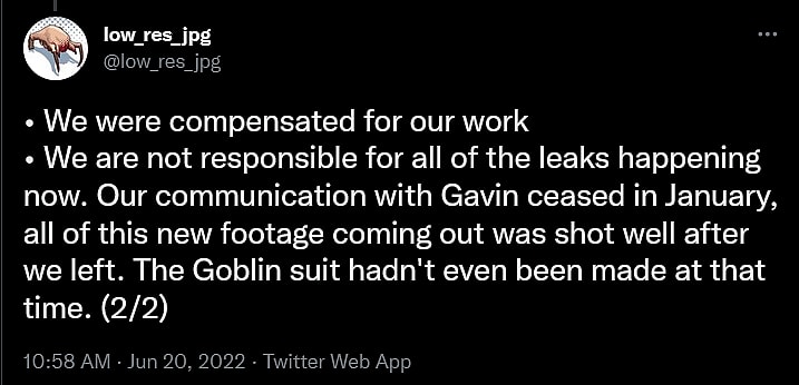 They also emphasized they had been “compensated for our work” whilst simultaneously denying that they were not the party behind recent leaks surrounding the film, as “communication with Gavin ceased in January, all of this new footage coming out was shot well after we left.”