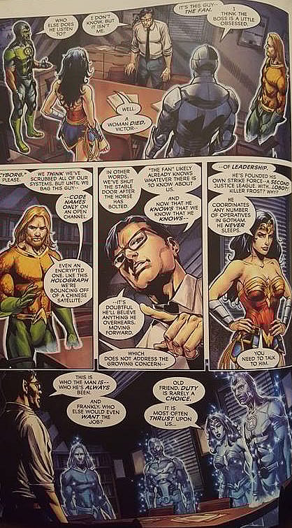 The Justice League believes he’s become obsessed with The Fan and they are also concerned that Batman has formed his own secondary Justice League with Lobo and Killer Frost, not to mention the Bat Family in Gotham. Wonder Woman is particularly concerned that he never sleeps.