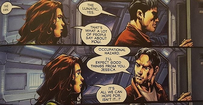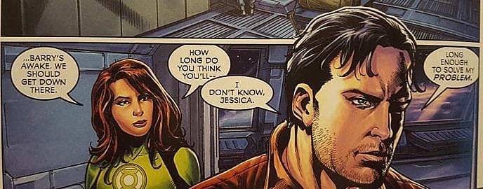And they are right about Batman becoming obsessed with The Fan. Batman explains to Green Lantern Jessica Cruz that his hiatus from the Justice League will be “long enough to solve [his] problem.” That problem being the Fan or as Batman describes him, “the lunatic.”